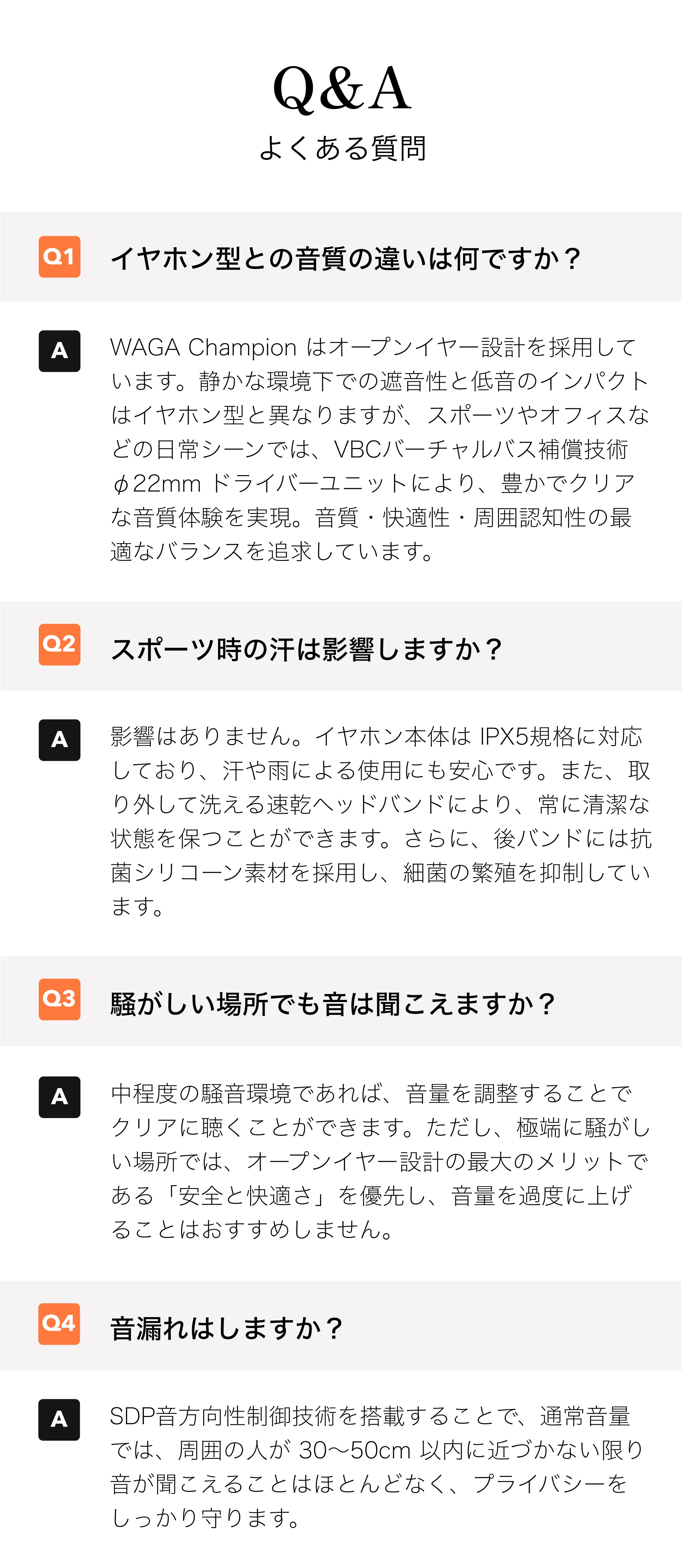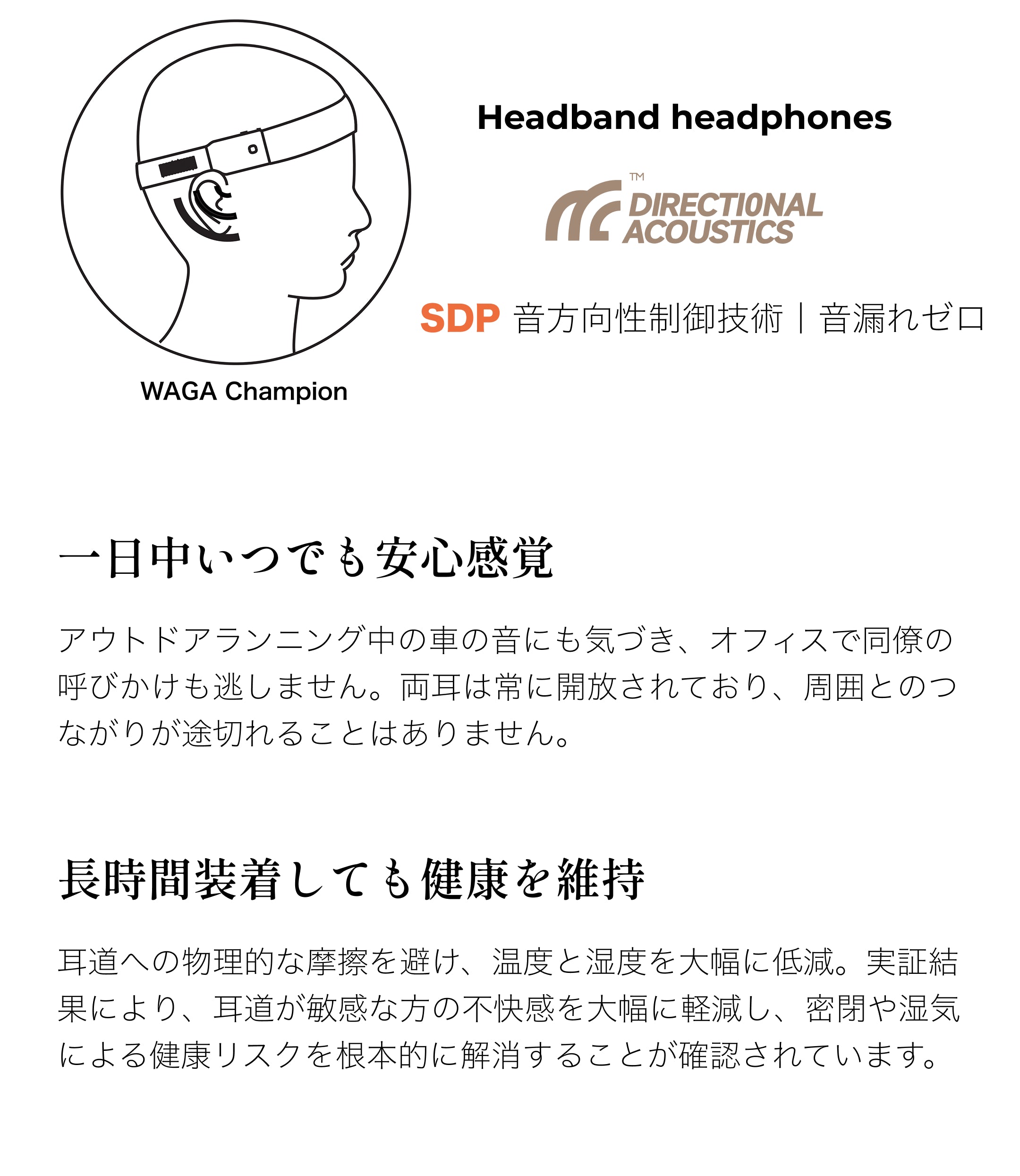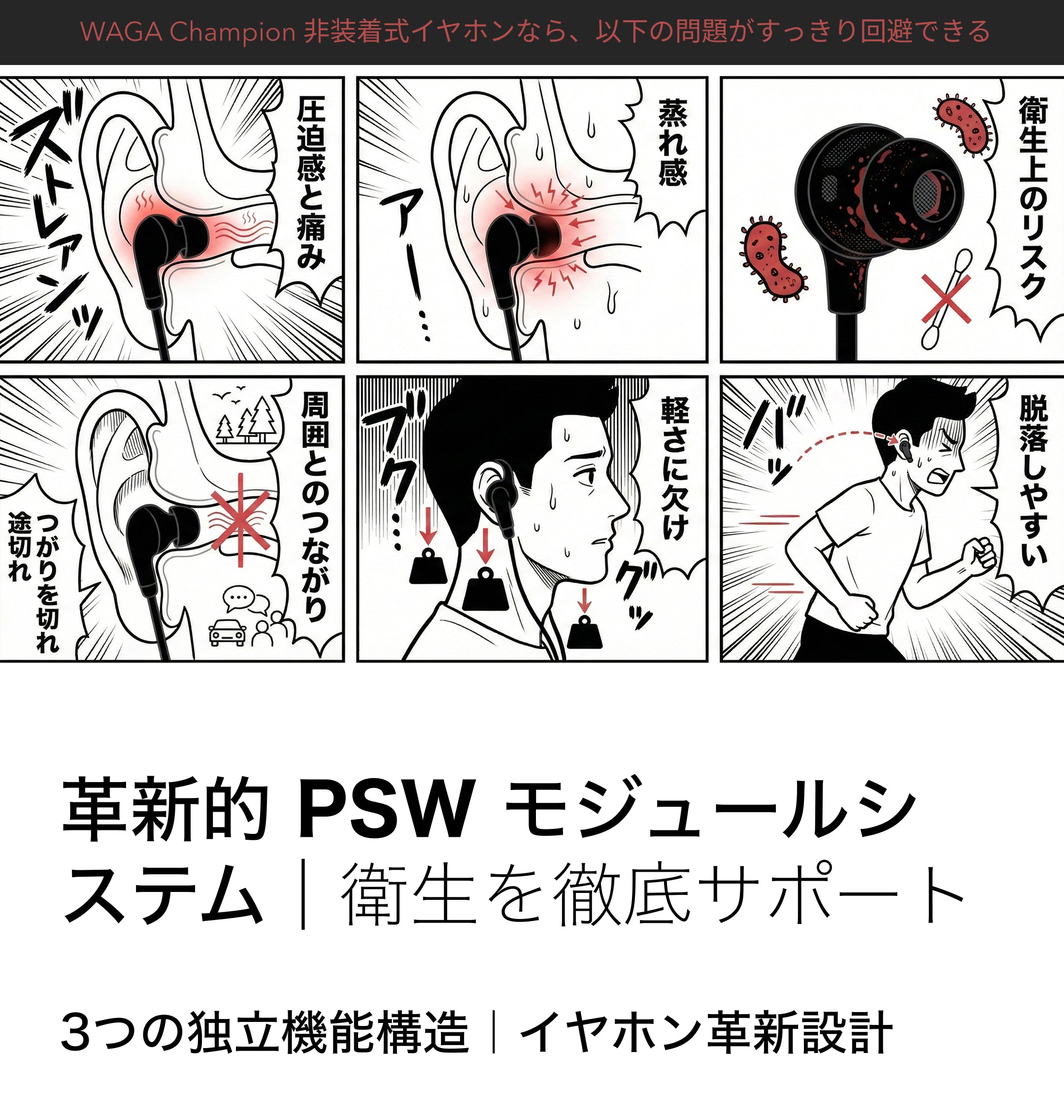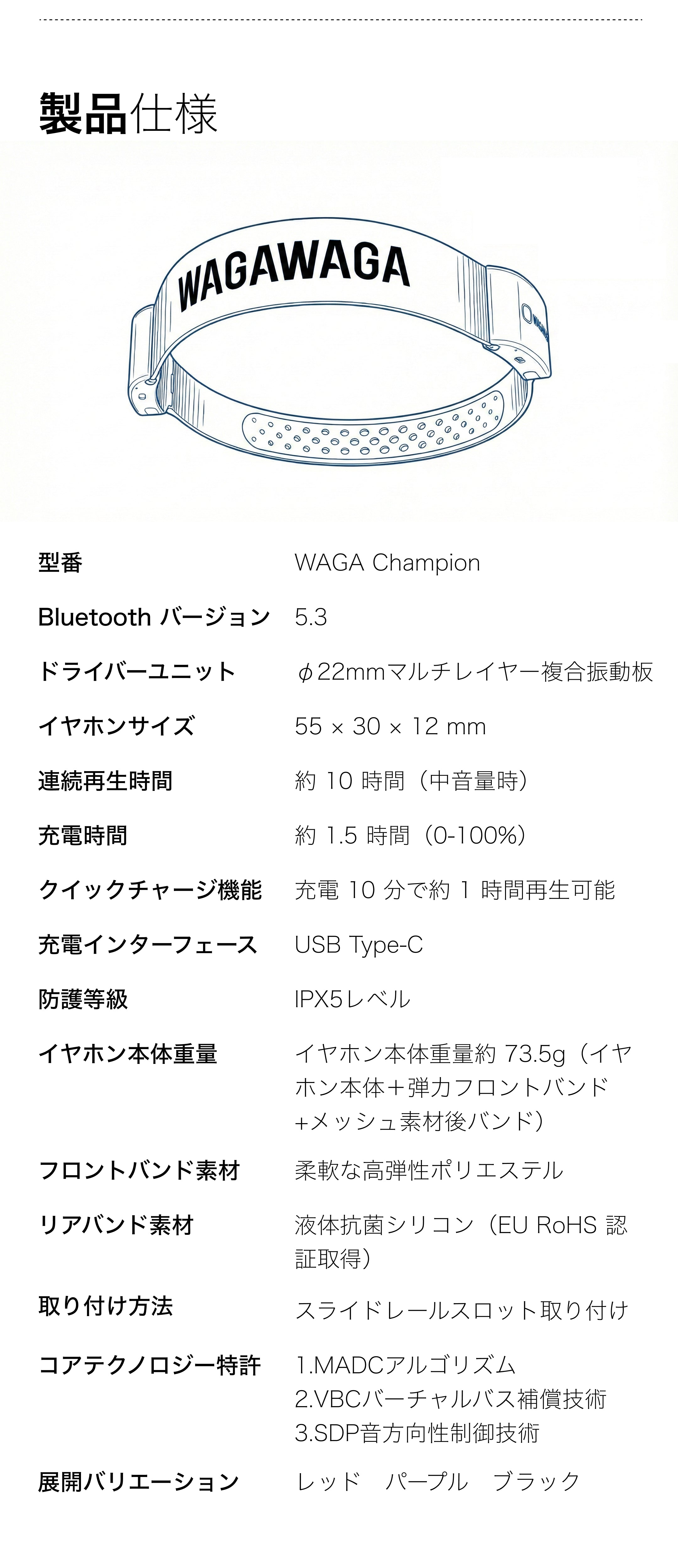 スポーツ専用 空気伝導 Bluetooth 5.3 イヤホン。 着脱式で丸洗い可能。連続再生8時間WAGAWAGA Champion