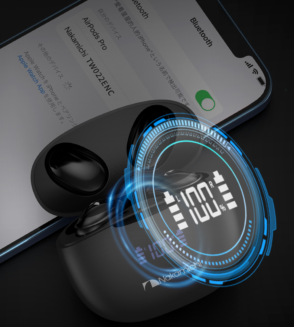 レイを搭載し、イヤホンの電池残量が一目で把握できます。