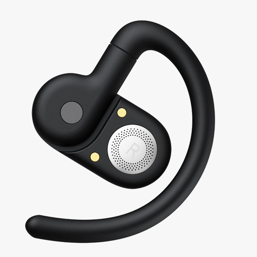 耳の構造に合うように設計されています。イヤーフックを調整して個々の耳の形状に合わせて安定した装着感を提供し、激しい運動を