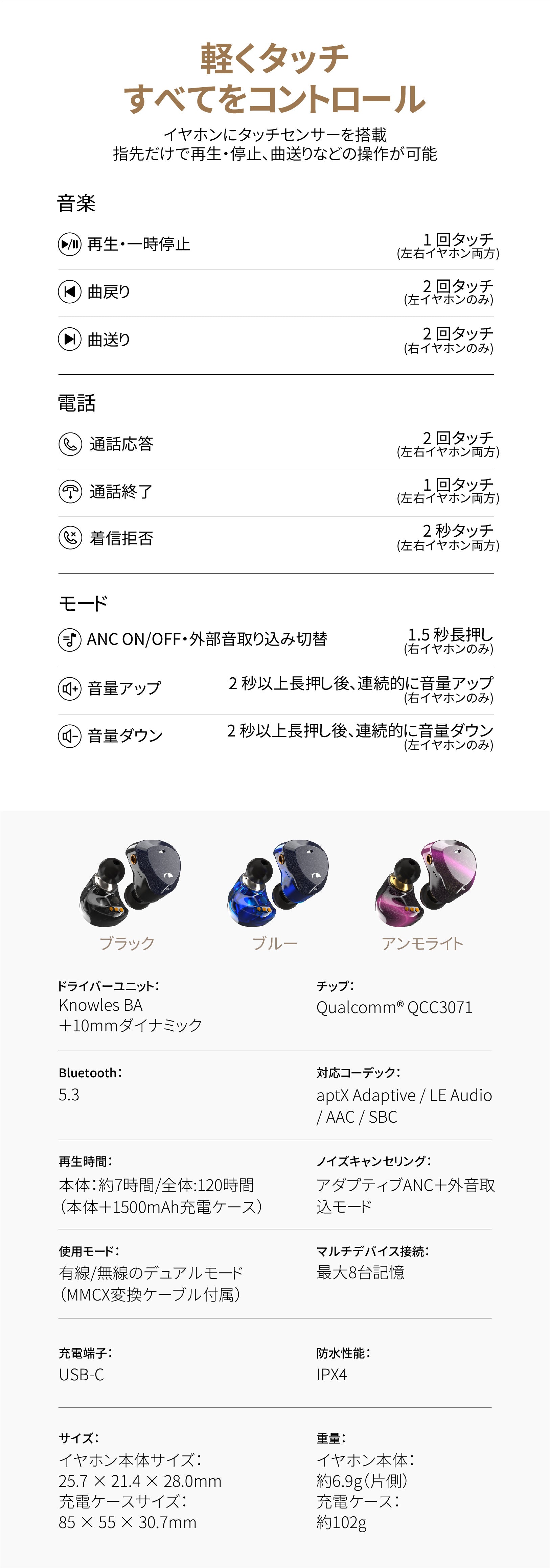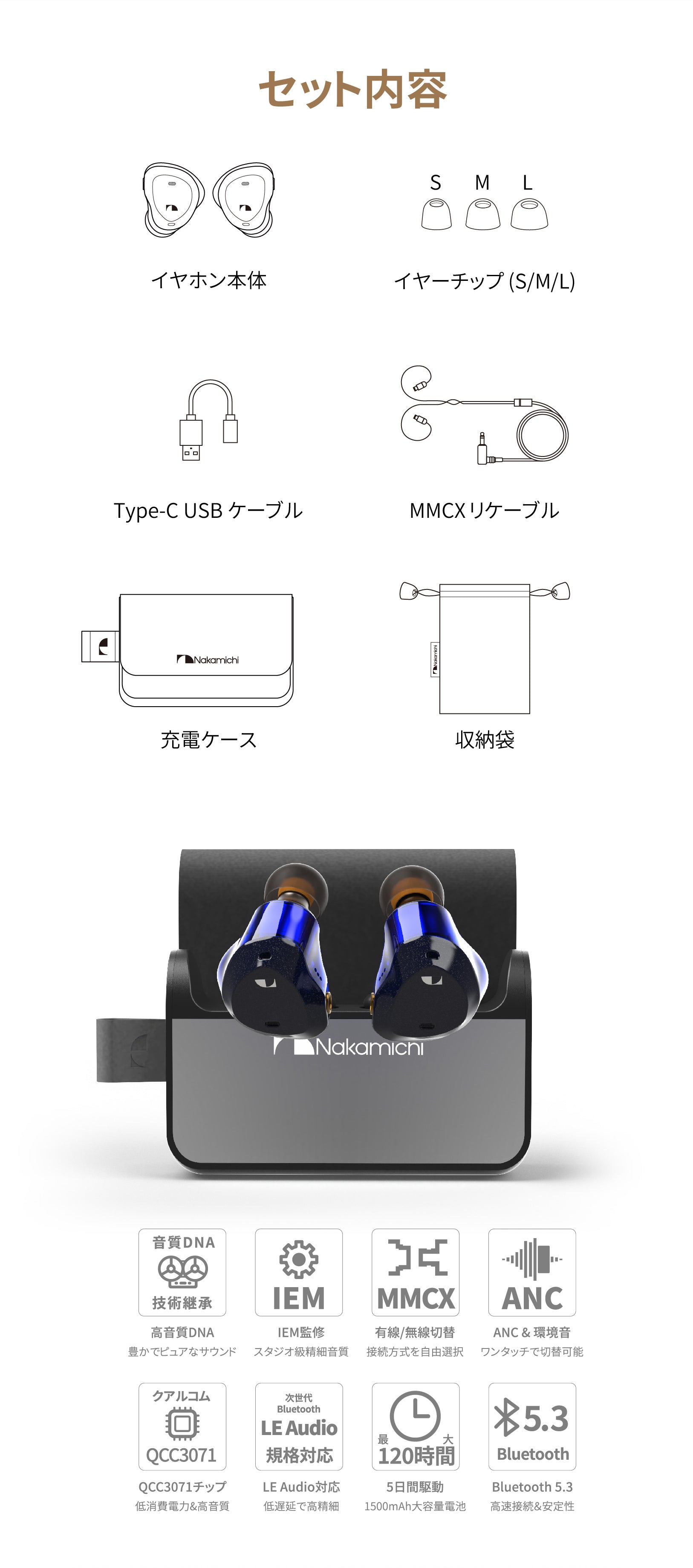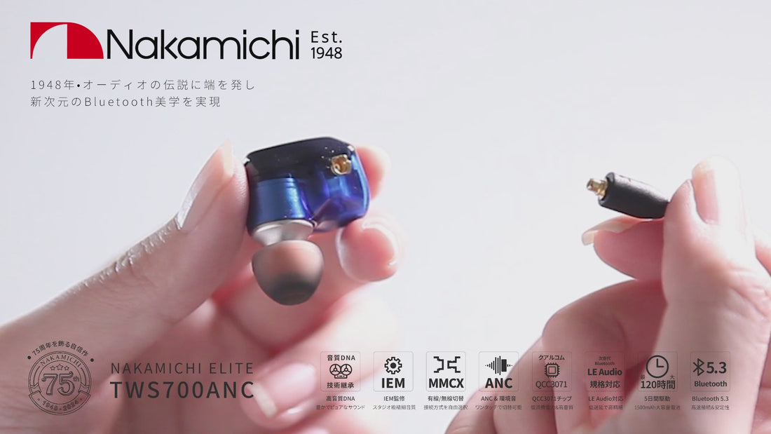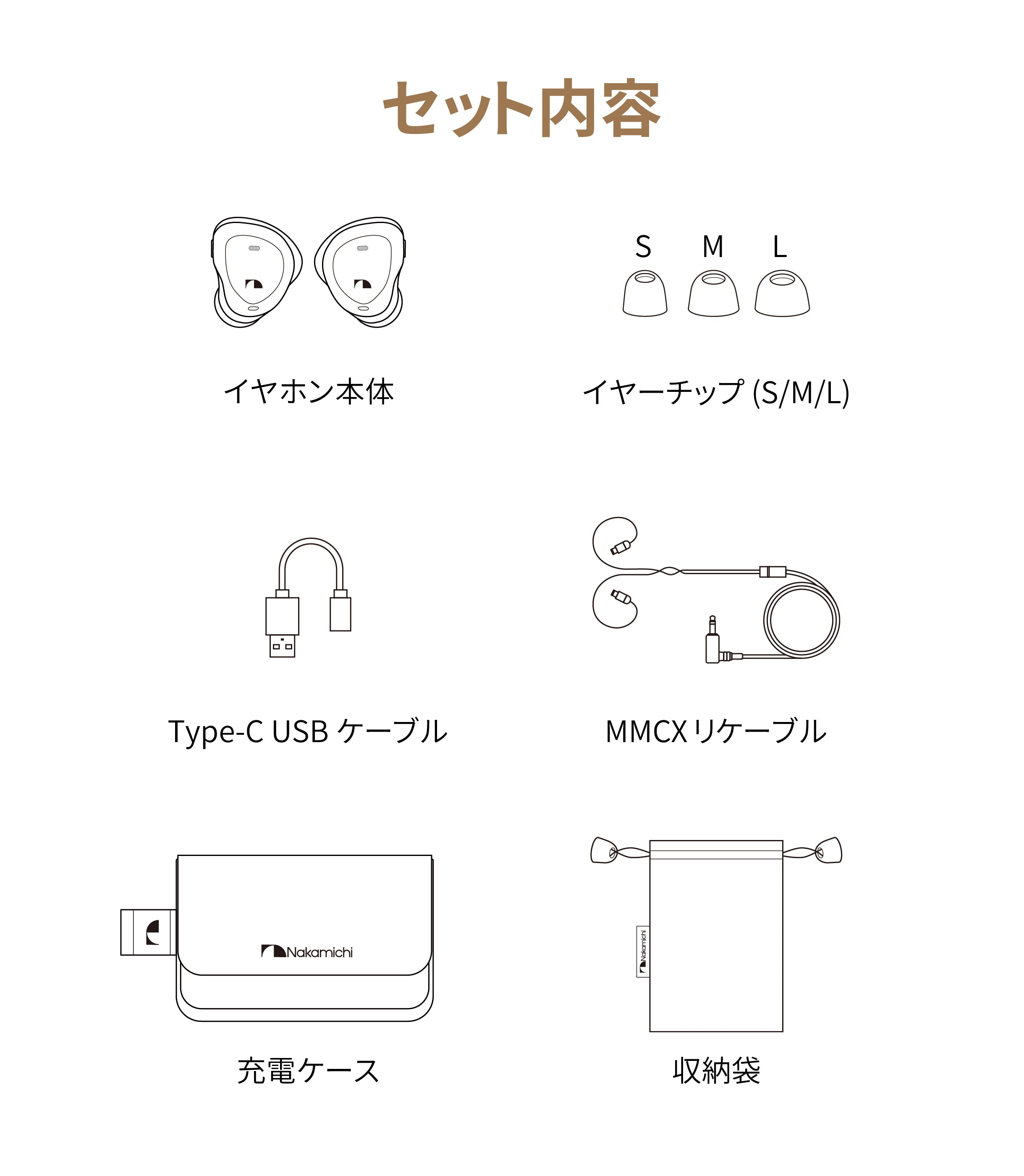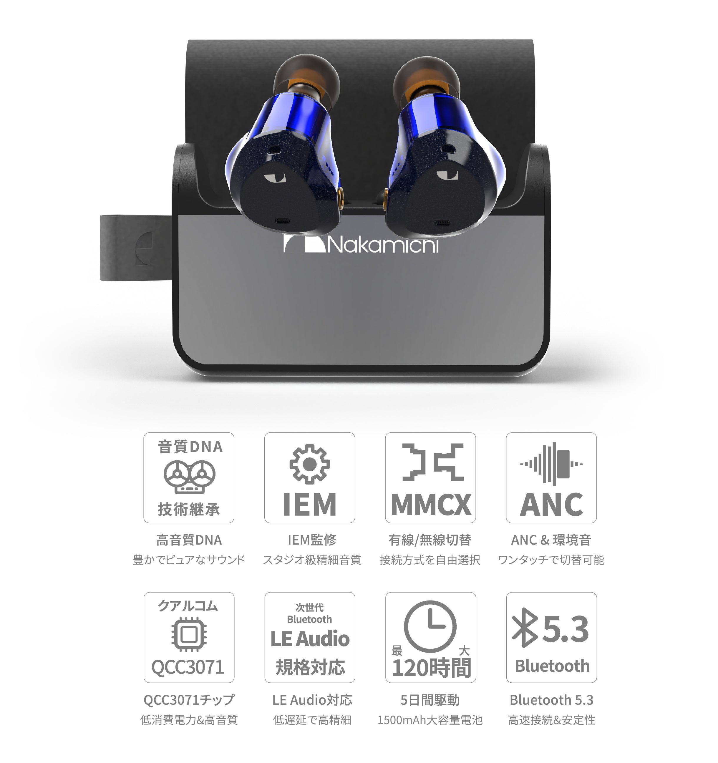 NAKAMICHIナカミチサウンドワイヤレス イヤホン 有線無線両用Bluetooth 5.3ブルートゥースイヤホン