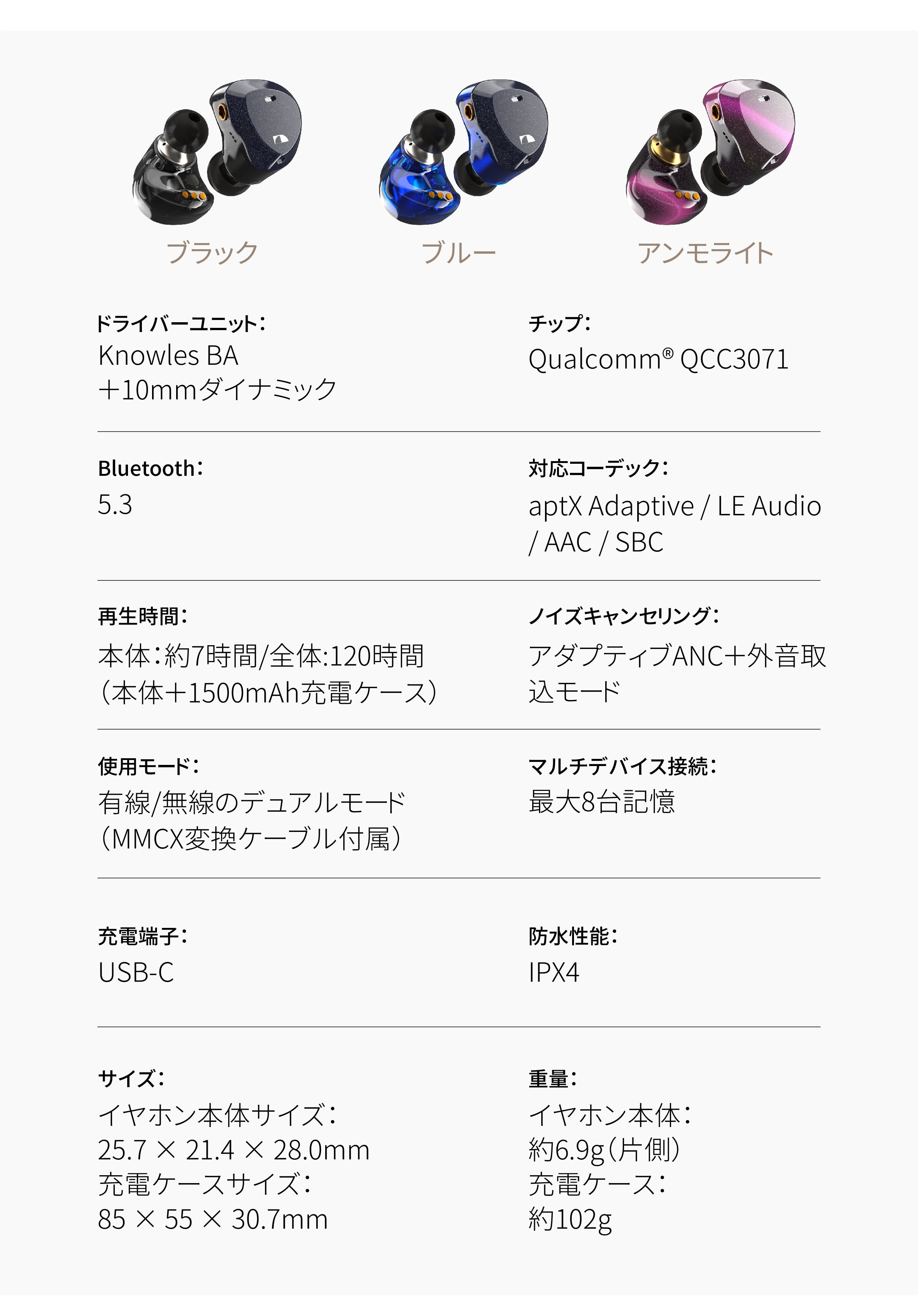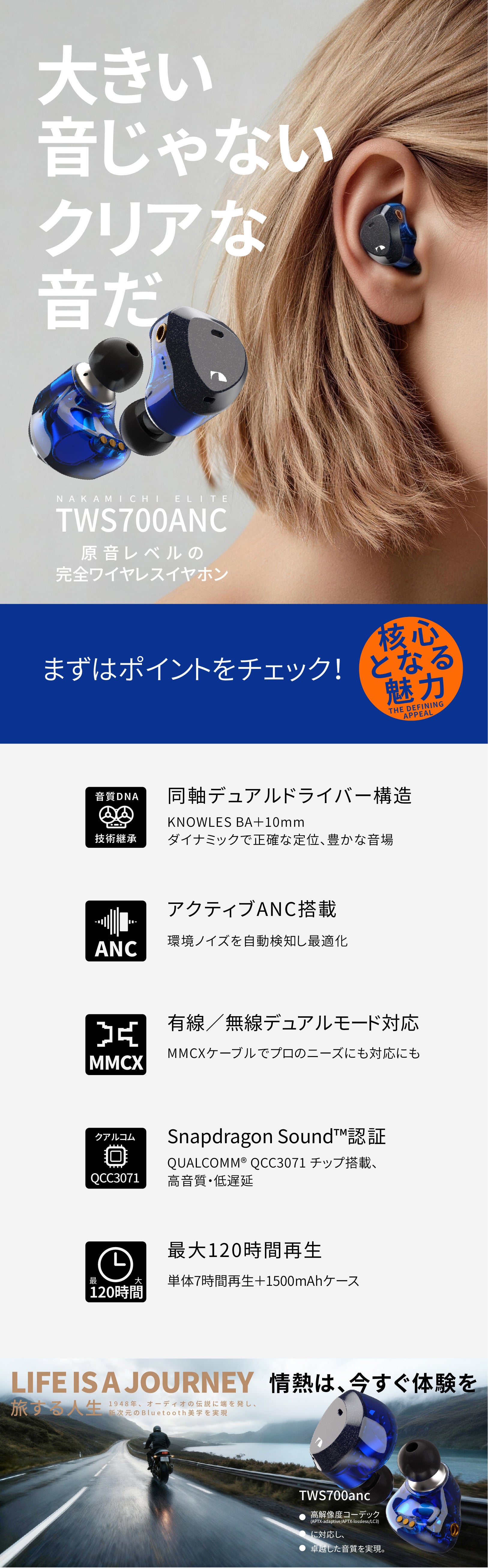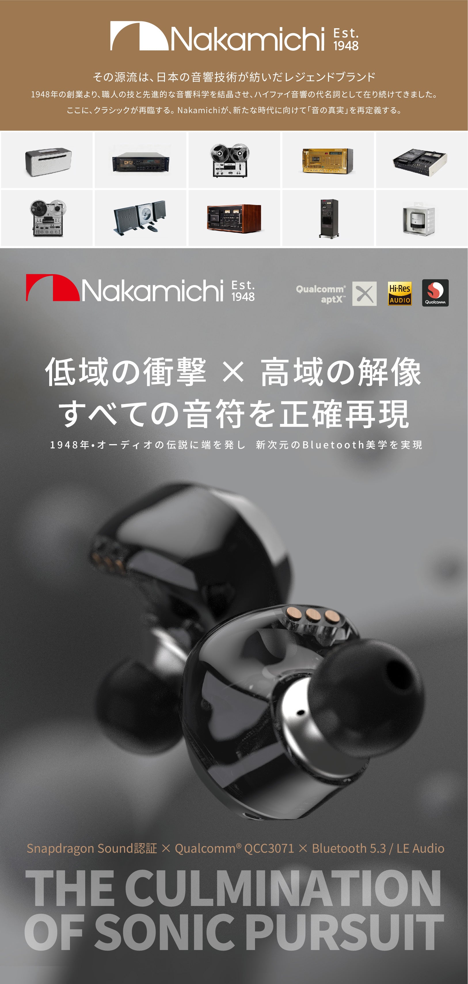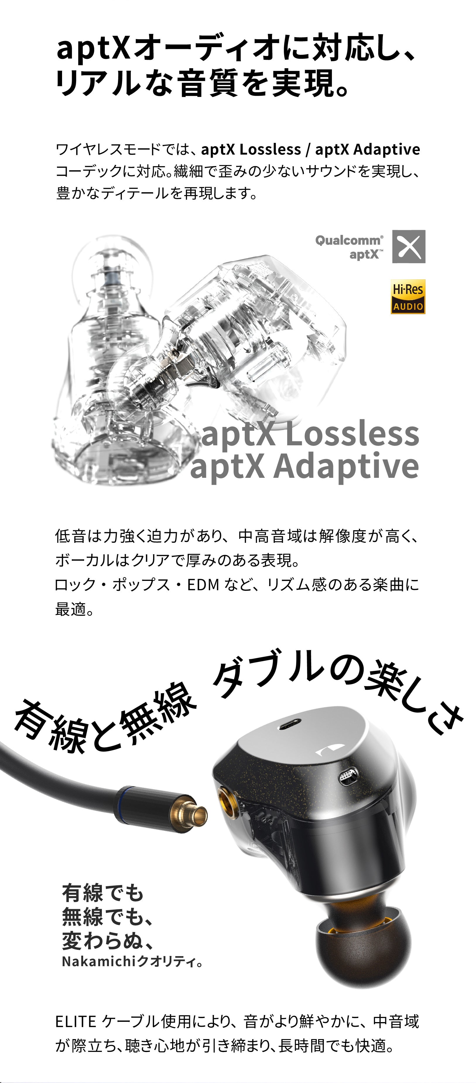 NAKAMICHIナカミチサウンドワイヤレス イヤホン 有線無線両用Bluetooth 5.3ブルートゥースイヤホン
